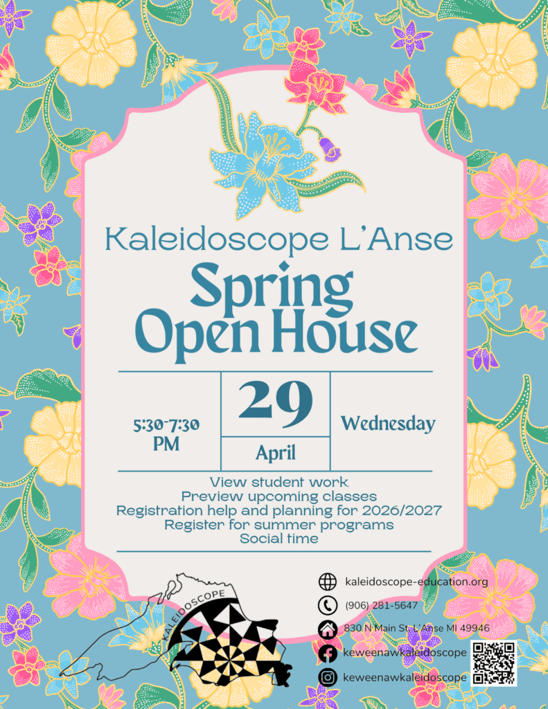 Come check us out! End of year open house from 5:30-7:30 at Kaleidoscope L’Anse.