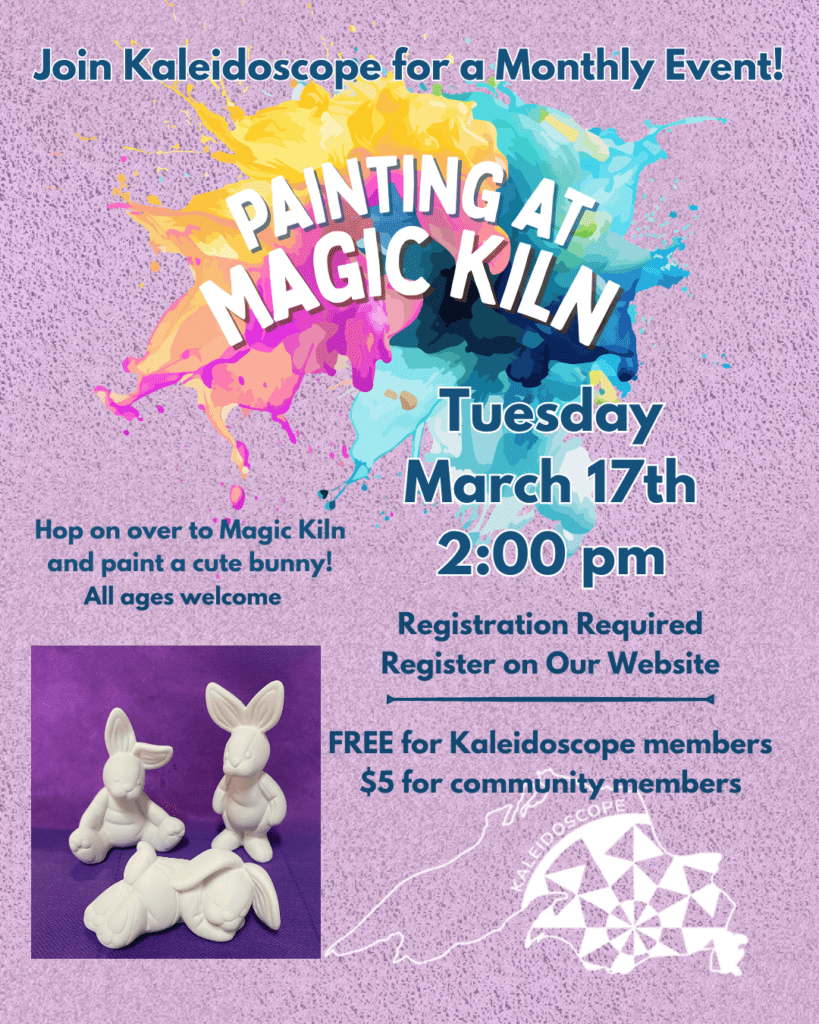 Join us March 17th at 2 PM at the Magic Kiln (312 Quincy St, Hancock) to paint a ceramic bunny,