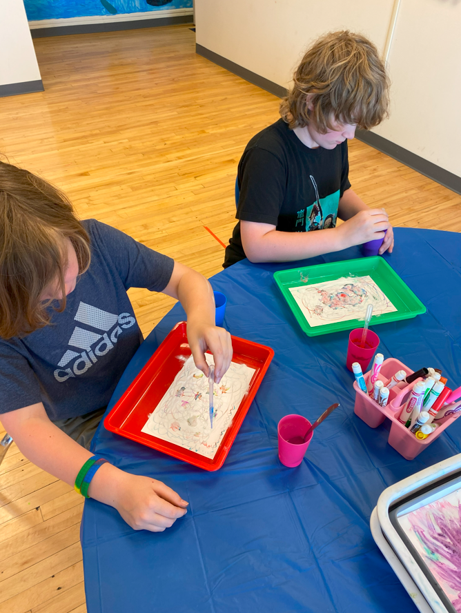 Each STEAM Saturday featured one science project and one art project. Science projects included such topics as Electrochemical Exploration, Microscopes, Magnetic Field Exploration, and Dinosaur Digs. Art topics included Ink Stamp Landscapes, Laminar and Tubular Water, Fizzy Baking Soda Paint, and Watercolor Painting.